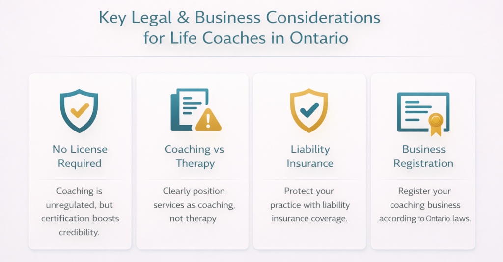 Bottom Line: You can legally start a life coaching business in Ontario without a license, but long-term success depends on certification, clear positioning, and building real-world coaching results and authority.